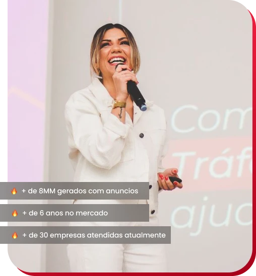 Empreendedora digital, Palestrante e Gestora de Trafego Pago há 6 anos, com mais de 8 milhões de reais investidos em anúncios online.